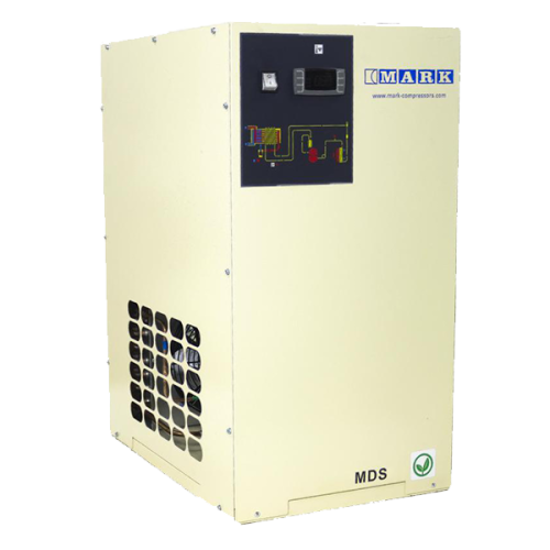 Осушитель MARK MDS является холодильной установкой с непосредственным испарением холодильного агента и испарителем с выходом сухого насыщенного пара. Охлаждаемый воздух подается на теплообменник, в котором происходит конденсация присутствующего водяного пара: конденсат собирается в сепараторе и выходит наружу через конденсатоотводчик. Осушитель предназначен для осушки сжатого воздуха в целях его промышленного использования.