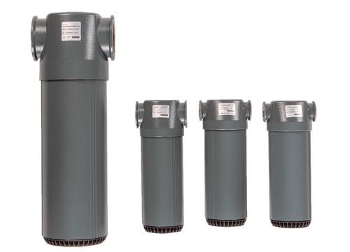 Наличие капельных фракций воды в сжатом воздухе, часто бывает недопустимо по условиям технологического процесса, например, процесс адсорбции в осушителе не будет эффективно проходить при наличии в воздухе капельной влаги и масла. Циклонный сепаратор предназначен для удаления воды и масла из сжатого воздуха. Благодаря конструкции корпуса, поток сжатого воздуха попадая в сепаратор закручивается, и за счет центробежных сил капельные фракции воды оседают на стенках корпуса и скатываются в нижнюю часть сепаратора и отводятся через конденсатоотводчик. Корпус сепаратора окрашен порошковым способом. Сепаратор серии G имеет пропускную способность до 37 м3/мин, оснащен поплавковым конденсатоотводчиком. Сепараторы серии F имеют пропускную способность до 500 м3/мин, имеют фланцевое соединение и внешний поплавковый конденсатоотводчик.