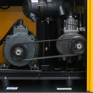 При ременном приводе компрессорный блок соединен посредством шкивов и ремней с приводным двигателем. Такая конструкция отличается высокой ремонтопригодностью и простотой технического обслуживания. А система автоматического натяжения ремней снижает затраты на сервисное обслуживание.