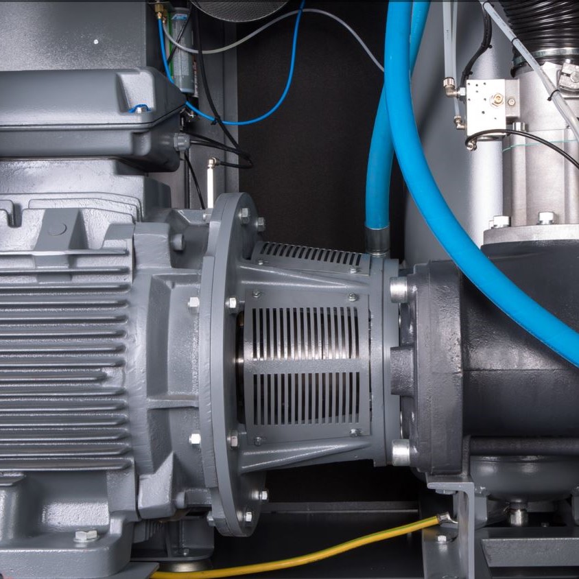 Все модели серии IMPETUS в базовой комплектации оснащены прямым приводом передачи крутящего момента от двигателя к винтовому блоку. Установки с прямой передачей могут выдерживать сильные нагрузки и работать продолжительное время без технических остановок. Прямая передача обеспечивает низкий уровень шума и вибраций.