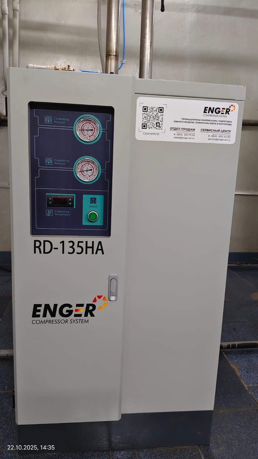 В комплексе с компрессором был установлен рефрижераторный осушитель ENGER RD-135HA. Этот аппарат обеспечивает глубокую осушку сжатого воздуха, удаляя влагу до требуемого уровня. Поддержание заданной влажности воздуха является критически важным для предотвращения коррозии оборудования, стабилизации производственных процессов и обеспечения сохранности сырья и готовой продукции.