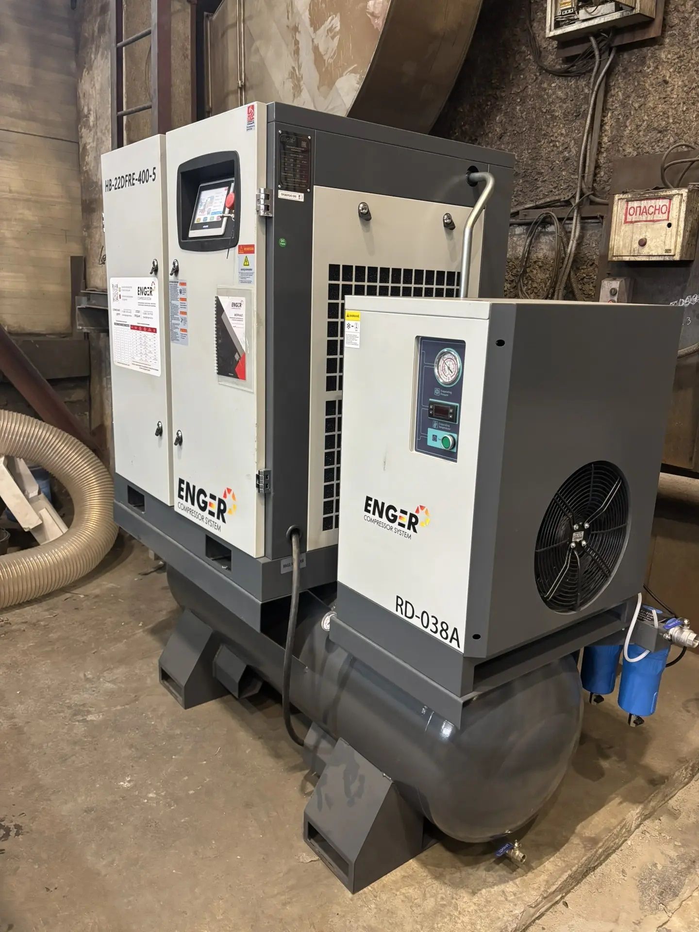 Винтовой компрессор Enger HB-22DFRE-400-5 16 для ООО «ПромКотлоСнаб» — мощное решение для металлообработки с давлением 16 бар и интеллектуальным управлением.